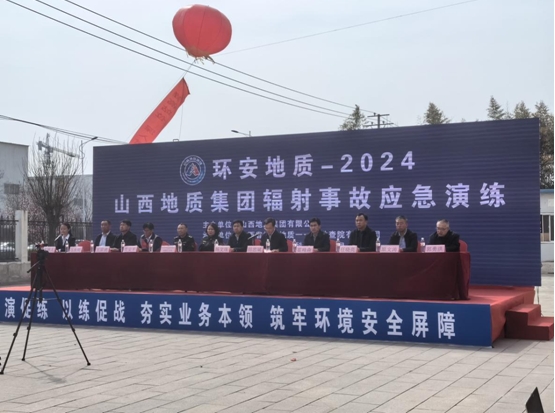 为了进一步检验和提高集团公司辐射事故专项应急预案的有效性、应急准备的完整性,提升应急响应专业能力,有效杜绝各类辐射事故发生,减少事故的危害,保护环境安全和人员健康安全,在省生态环境厅、省地勘局及驻地监管部门的大力指导和支持下,4月2日下午,山西地质集团在一一四院有限公司组织开展“环安地质-2024”放射性测井Ⅳ类放射源井下失控辐射事故应急演练。山西省生态环境厅核与辐射源安全监管处处长杨文珠出席并致辞,集团副总经理田忠斌全程参与,集团下属11家涉源单位负责人及辐射安全工作专职人员80余人参加此次演练。